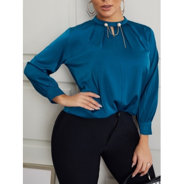 Lovely Stylish O Neck Fold Design Deep Blue Blouse