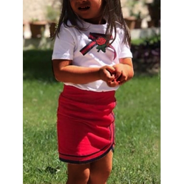 Lovely Trendy Christmas Day Floral Print Red Girl Two Piece Skirt Set