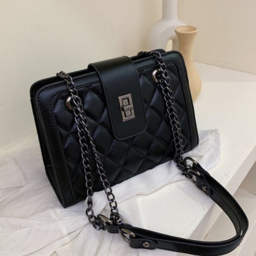 Lovely Trendy Metal Accessories Decoration Black Crossbody Bag