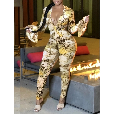 Lovely Sexy Flared Cobra Print Hollow-out Yellow One-piece Jumpsuit
