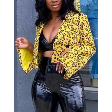 Lovely Formal Leopard Print Patchwork Yellow Blazer