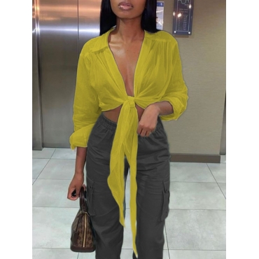 Lovely Casual Turndown Collar Loose Yellow Blouse