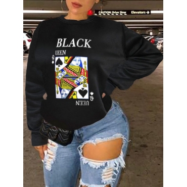 Lovely Casual Card Letter Print Black Plus Size Hoodie