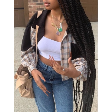 Lovely Casual Plaid Print Patchwork Black Coat