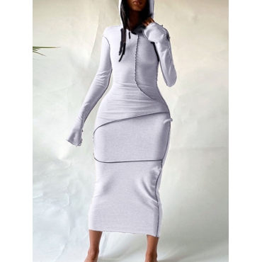 Lovely Casual Hooded Collar Basic Skinny White Mid Calf Dress