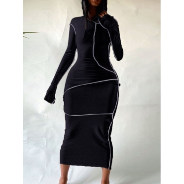 Lovely Casual Hooded Collar Basic Skinny Black Mid Calf Dress