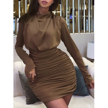 Lovely Chic Half A Turtleneck Fold Design Coffee Mini Dress