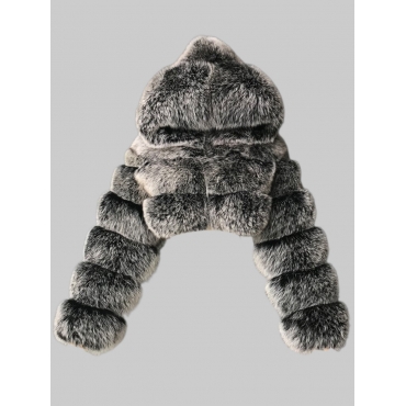 Lovely Casual Hooded Collar Zipper Design Silver Faux Fur