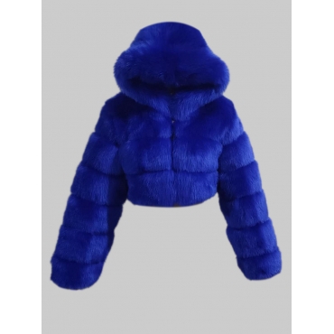 Lovely Casual Hooded Collar Zipper Design Sapphir Faux Fur