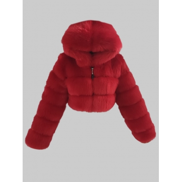 Lovely Casual Hooded Collar Zipper Design Bright Red Faux Fur