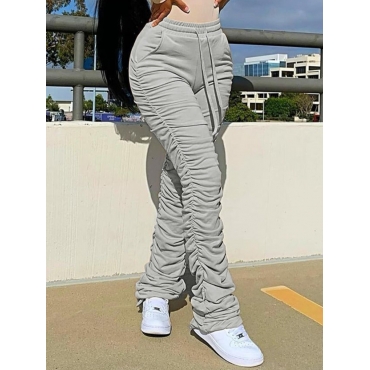 Lovely Chic Drawstring Fold Design Grey Pants