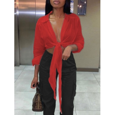 Lovely Casual Turndown Collar Loose Red Blouse
