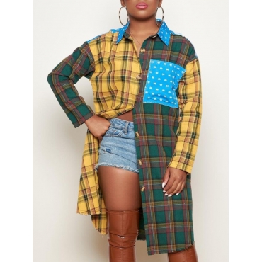 Lovely Casual Plaid Print Patchwork Yellow Blouse