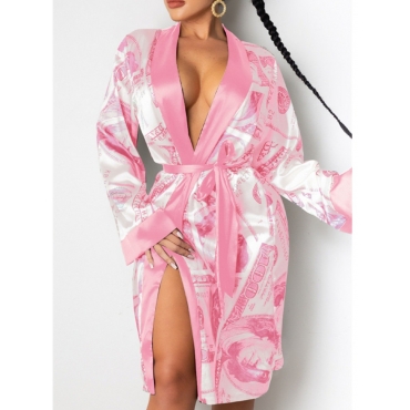 Lovely Street Money Print Lace-up Pink Trench Coat