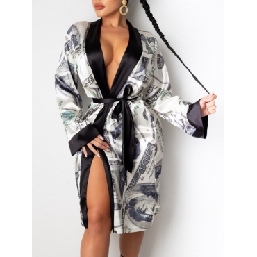 Lovely Street Money Print Lace-up Black Trench Coat