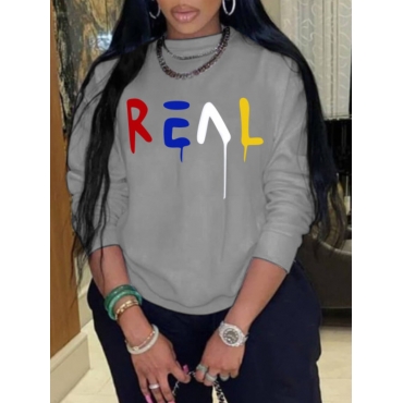 Lovely Casual O Neck Letter Print Grey Hoodie