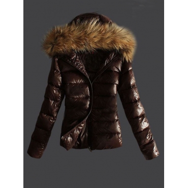 Lovely Casual Hooded Collar Zipper Design Brown Parka