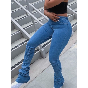 Lovely Casual Fold Design Skinny Royalblue Jeans