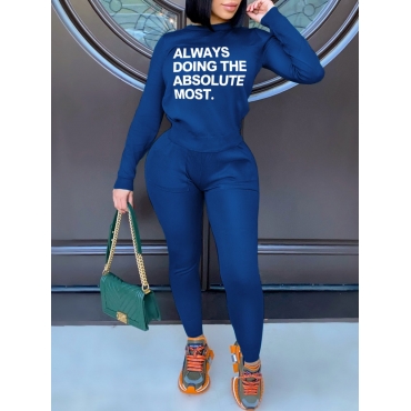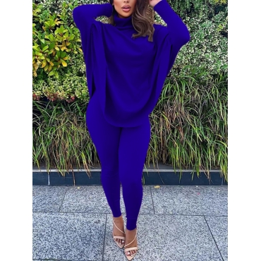 Lovely Casual Turtleneck Loose Blue Two Piece Pants Set