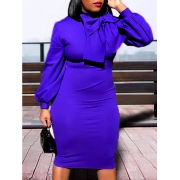 Lovely Formal O Neck Bow-tie Decoration Blue Mid Calf Plus Size Dress