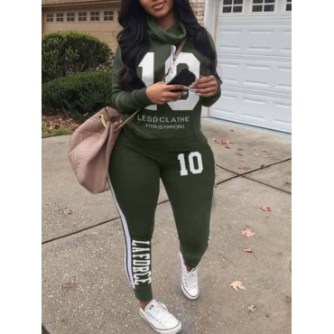 Lovely Casual Letter Print Patchwork Army Green Two Piece Pants Set