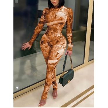 Lovely Trendy Print Skinny Yellow One-piece Jumpsuit(Batch Print)