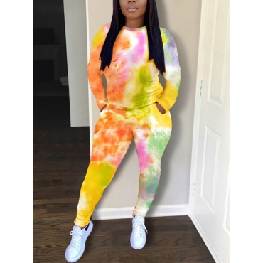 Lovely Casual Tie Dye Print Yellow Two Piece Pants Set