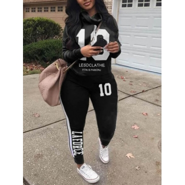 Lovely Casual Letter Print Patchwork Black Two Piece Pants Set