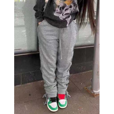 Lovely Casual Bandage Design Drawstring Grey Pants