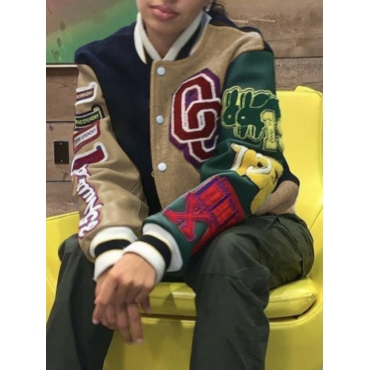 Lovely Street Letter Print Patchwork Khaki Jacket