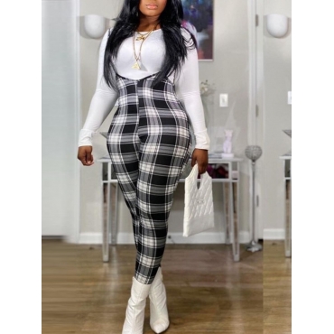 Lovely Chic Plaid Print Patchwork White Two Piece Pants Set