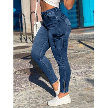 Lovely Casual High-waisted Basic Skinny Deep Blue Jeans