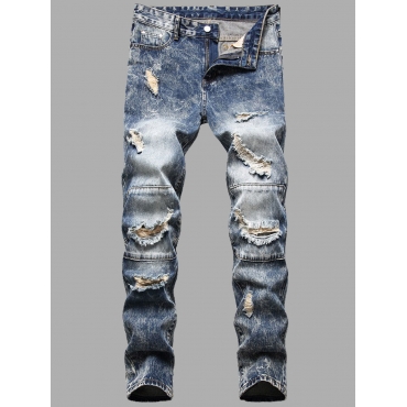 Lovely Casual Tie-dye Patchwork Blue Men Jeans