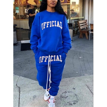 Lovely Casual Letter Print Drawstring Blue Two Piece Pants Set