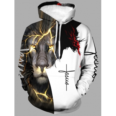 Lovely Street Lion Print Patchwork White Men Hoodie