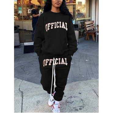Lovely Casual Letter Print Drawstring Black Two Piece Pants Set
