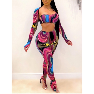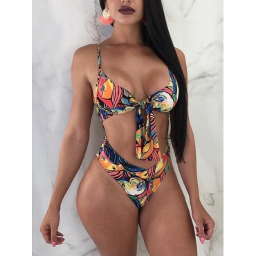 Lovely Stylish Graffiti Print Bandage Design Multicolor Two-piece Swimsuit