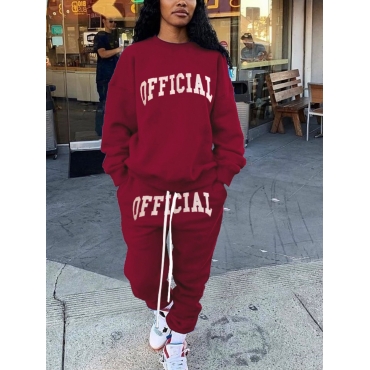 Lovely Casual Letter Print Drawstring Wine Red Two Piece Pants Set