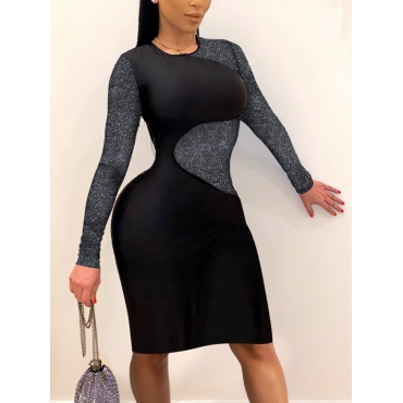 Lovely Casual O Neck Patchwork Black Knee Length Dress