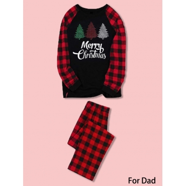 Lovely Trendy Christmas Day Plaid Letter Print Dad Two Piece Pants Set