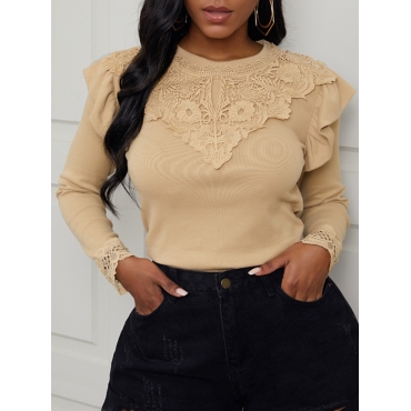 Lovely Sweet O Neck Patchwork Khaki T-shirt