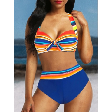 Lovely Sexy Striped Lace-up Multicolor Two-piece Swimsuit