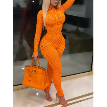 Lovely Sexy Mandarin Collar Hollow-out Orange One-piece Jumpsuit