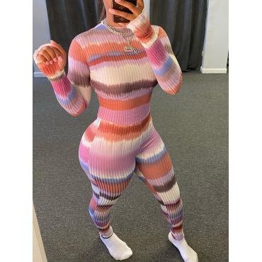 Lovely Casual O Neck Color-lump Patchwork Pink One-piece Jumpsuit