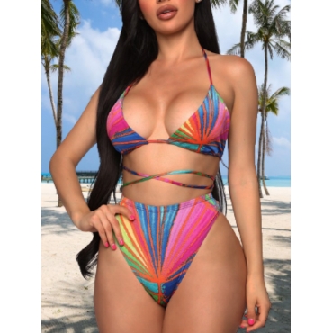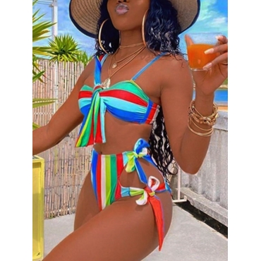Lovely Sexy Striped Knot Design Multicolor Two-piece Swimsuit
