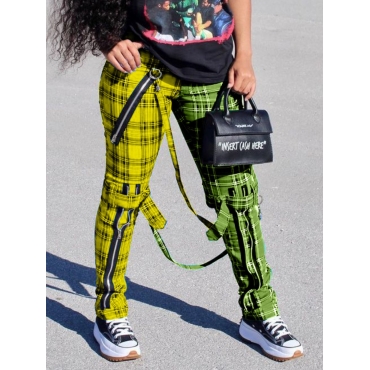 Lovely Casual Plaid Print Patchwork Yellow Pants