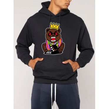 Lovely Casual Cartoon Print Patchwork Black Men Hoodie