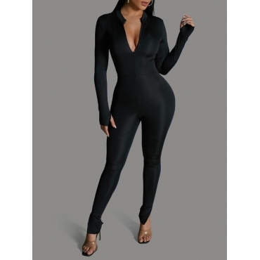 Lovely Casual Mandarin Collar Skinny Black One-piece Jumpsuit