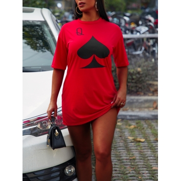 Lovely Casual O Neck Heart-shaped Print Red Mini Dress