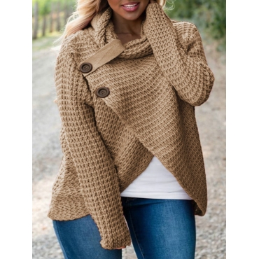 Lovely Casual Button Cross-over Design Khaki Plus Size Sweater